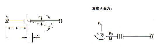 波紋補(bǔ)償器,用以補(bǔ)償軸向位移X=32mm,橫向位移Y=2.8mm,角向位移θ=1.8度,已知L=4m,補(bǔ)償器疲勞破壞次數(shù)按15000次考慮,試計算支座A的受力。