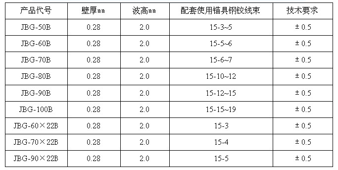三.預(yù)應(yīng)力金屬波紋管規(guī)格性能參數(shù)